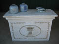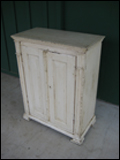 with 2 doors in old cream paint, with carved detail on sides.
