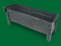 with a shaped lid on square feet in black paint